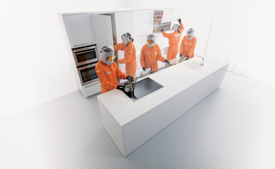 Тогда посетите наш Шоу-рум и воспользуйтесь сервисом – «Тест-драйв кухни». Сервис представляет собой мобильные корпуса кухни в масштабе 1:1. Расставив корпуса согласно эскизу, Вы поймете насколько кухня удобна.
