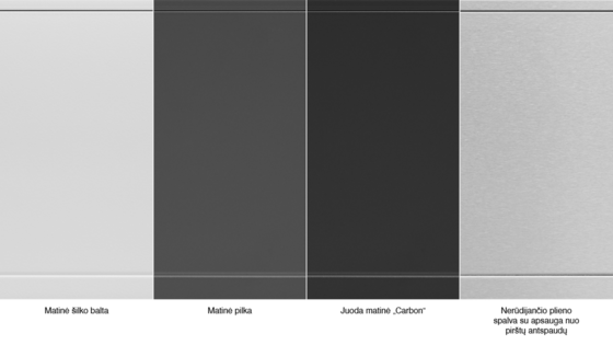 Mažų detalių didelis poveikis. Ypatingai su minimalistiniu dizainu. Baltos „Silk“ spalvos stalčiaus šonai išsiskiria iš medžio tekstūros spintelių. Vidinė stalčiaus pusė – subtili pilka matinė „Orion“. Tamsios spalvos dangtelis dera su vidine stalčiaus spalva.