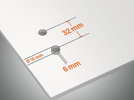 To fix EXPANDO T, drill a hole of 10 mm in diameter and just 6 mm in depth. Boss drilling is no longer required for hinges, so the new fixing method produces a new drilling pattern. Fixing positions stay the same for lift and box systems.