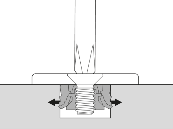 EXPANDO T is suitable for fastening Blum fittings to thin panels used for furniture manufacturing. Panels of 8 mm thickness or more can be used, provided they have sufficient stability and strength.