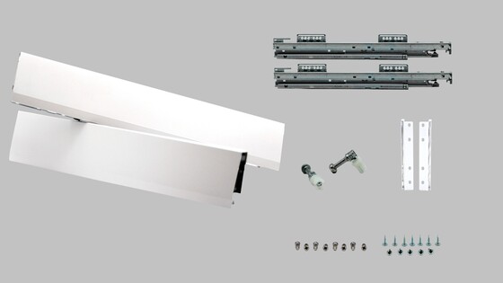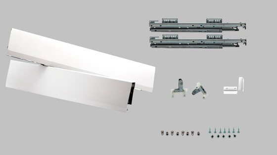 La nueva solución que se integra a nuestro programa para facilitar tu pedido y asegurar que tengas todos los componentes necesarios para armar un cajón estándar MERIVOBOX. Elige entre dos diferentes colores: el blanco seda mate y el gris orión mate que garantizan una estética sofisticada.