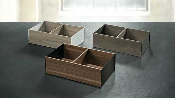 Los marcos de acero de AMBIA-LINE pueden combinar o constrastar con LEGRABOX. De este modo es posible lograr un diseño armónico entre el cajón y su interior.