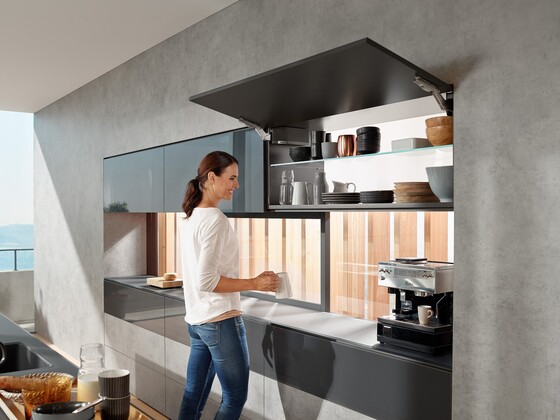 AVENTOS HK top blends discreetly into tall units and wall cabinets. The stay lift has already won several awards for its minimalist design.