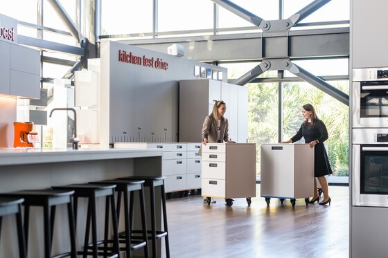 Thanks to the kitchen test drive, you can try out a 1:1 scale mockup of your project in one of our showrooms. For free. Once you have the plans from your designer, let us answer all the important questions before you commit to production. Plus, enjoy a coffee on us in a relaxed Blum environment.