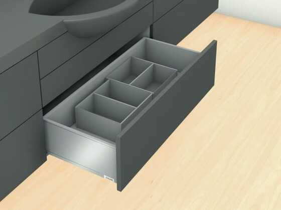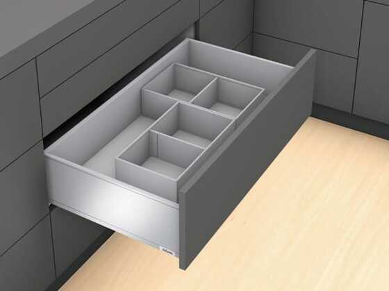 Includes height extensions and three cross dividers. Add bottle set to steel design 100 or 200mm drawer frame.