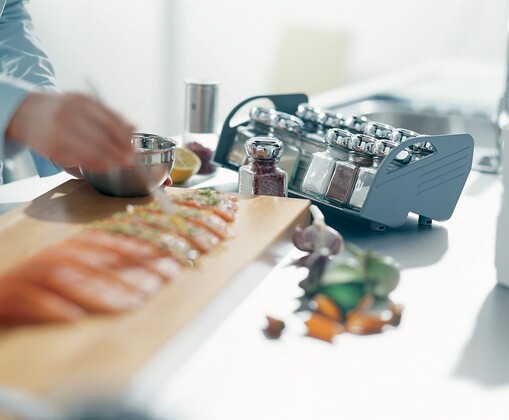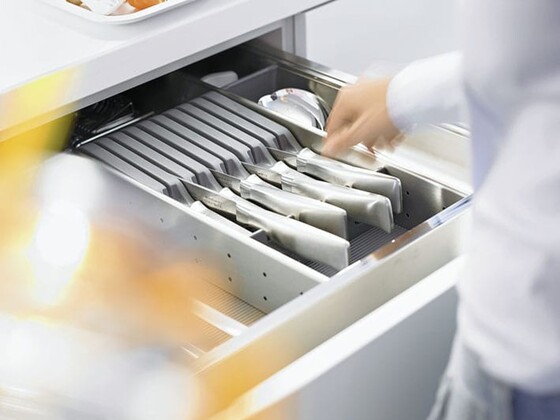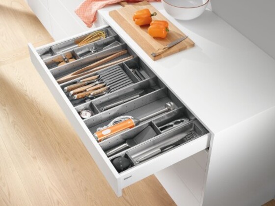 ORGA-LINE’s container trays and utensil dividers for drawers and its cross and longside dividers for pull-outs give you huge scope for designing and organising TANDEMBOX antaro interiors.
