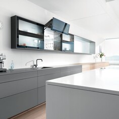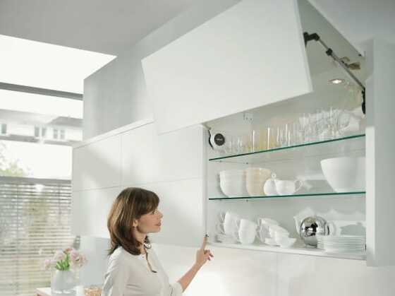 Thanks to SERVO-DRIVE for AVENTOS, lift systems glide open at a single touch on fronts. Even large and heavy fronts open with gravity-defying ease. And they close again just as easily. Just press the switch which is within easy reach on the face of the cabinet and they close softly and effortlessly with soft-close BLUMOTION.