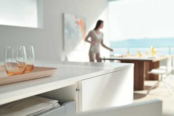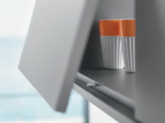Whether it’s doors or stay lifts - handle-less furniture will open at a single press with the TIP-ON mechanical opening system. To close, simply press shut. The TIP-ON mechanism will still work perfectly even if users pull open doors or overhead cabinets.