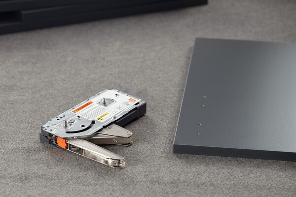 The fixing position of AVENTOS HK top is the same regardless of application and cabinet height. Once the lift mechanism has been precisely adjusted to the weight of the front, the stay lift will open, close and hold with reliable ease.