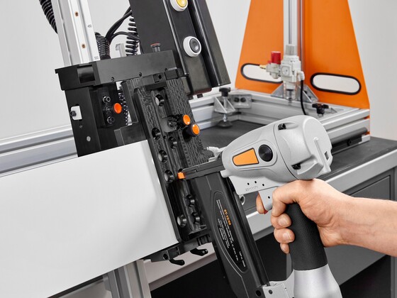 Wkręty czy gwoździe? Obok tradycyjnej techniki mocowania na wkręty nowa pomoc montażowa BOXFIX plus daje kolejną możliwość - systemy szuflad LEGRABOX, MERIVOBOX i TANDEMBOX można teraz montować bez szczelin i wyraźnie szybciej – dzięki nowej, opcjonalnej technice mocowania na gwoździe. Komfort montażu podnoszą przy tym zaciski pneumatyczne.