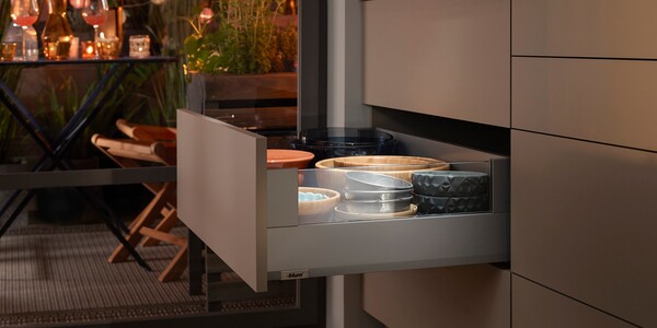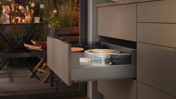 MERIVOBOX convence seus clientes por toda a vida útil do móvel. O conceito totalmente recém-desenvolvido de guias garante um deslizamento extremamente suave e uma alta capacidade de carga. Suavidade e estabilidade ao mesmo tempo.