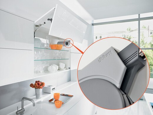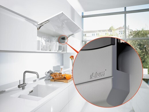 AVENTOS HS passar för stora fronter och svänger upp över skåpet. Kombinera gärna AVENTOS HS med krönlister.