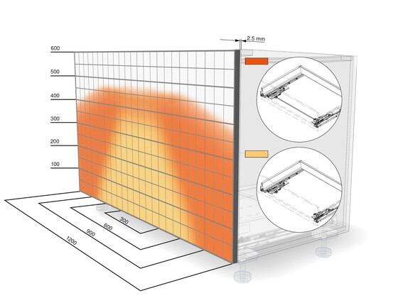 Den mekaniska öppningsfunktionen grundar sig på de speciellt anpassade TANDEMBOX-stomskenorna. De olika TIP-ON BLUMOTION-enheterna är anpassade för olika nominella längder och viktintervall. Övriga komponenter passar för alla monteringssituationer.
