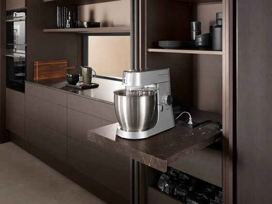 I applikationer med utdragbara hyllor med MOVENTO är AMPEROS AC lika lätt att installera som att eftermontera. Eluttaget som är placerat i botten av den utdragbara hyllan ger smarta integrationsmöjligheter och låsmekanismen gör att även större och tyngre apparater står stabilt och blir lätta att använda.