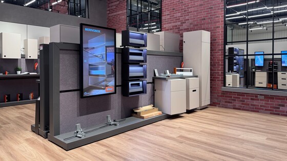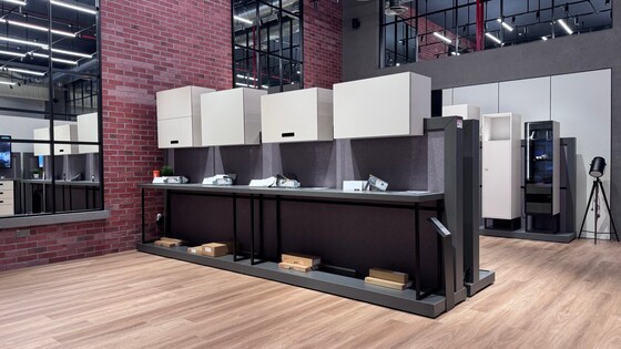 The 600-sqm showroom displays all our products such as Box pull-out systems, AVENTOS lift systems, Hinges, Runners, and ORGA-LINE/AMBIA-LINE organisation systems. Our innovative motion technologies -- TIP-ON BLUMOTION, SERVO-DRIVE, TIP-ON and BLUMOTION - are installed in the fittings to better give an idea as how Blum products work in a real living context. Moreover, our showroom specialists can offer a quick guided tour around the showroom to allow a much deeper immersion into what Blum can offer.