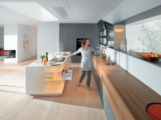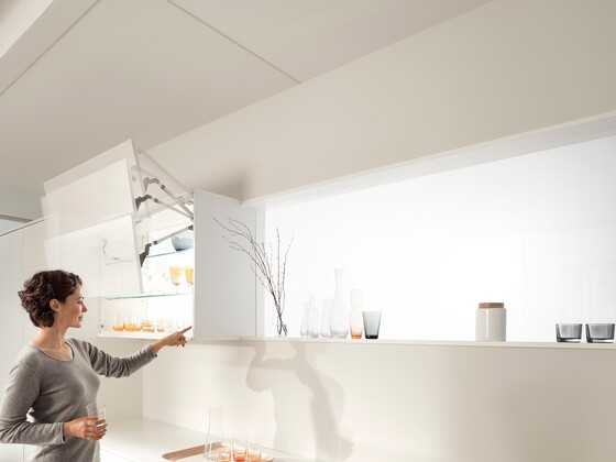 This motion technology delivers supreme opening ease. A single touch suffices and wall cabinets, pull-outs and refrigerators seem to open by themselves. And they close again softly and effortlessly with soft-close BLUMOTION.