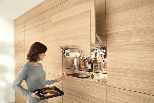 SERVO-DRIVE uno for AVENTOS is the ideal solution if you want electrical motion support for just one wall cabinet. Powered by Blum's plug in transformer, the lift system opens at a single touch and closes softly and effortlessly with BLUMOTION.