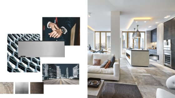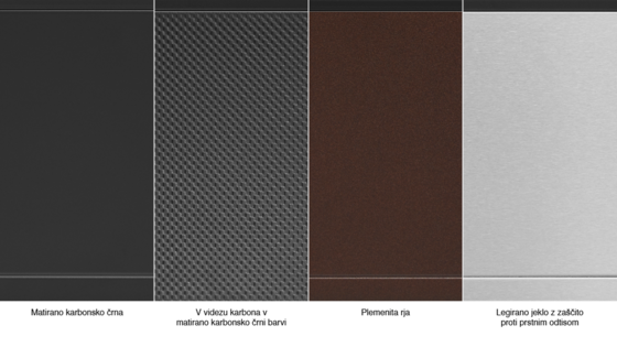 Sistem predalov z nenavadnimi videzi stranic na podlagi nove matirano karbonsko črne barve ter kot mešanica materialov z legiranim jeklom z zaščito proti prstnim odtisom, 3D-vtisnjenjem v videzu karbona ali s strukturnim premazom v barvi plemenite rje.