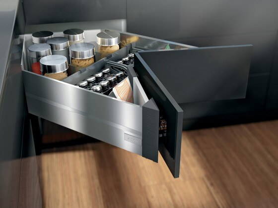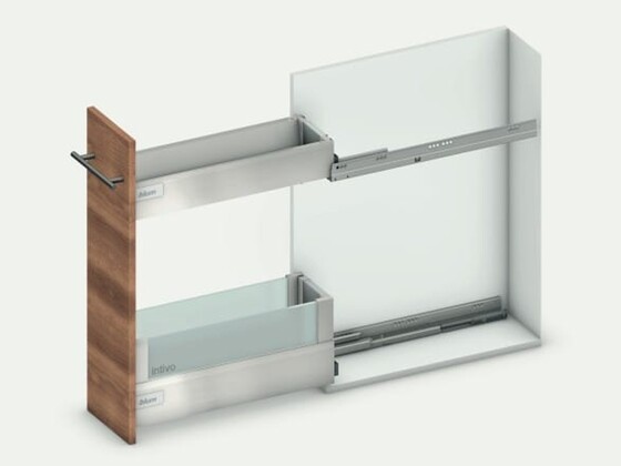 Blum’s idea for narrow cabinets gives you the possibility to use every inch of storage space available.