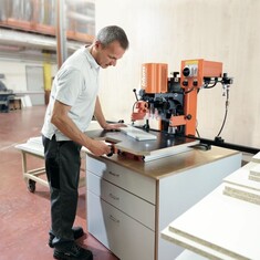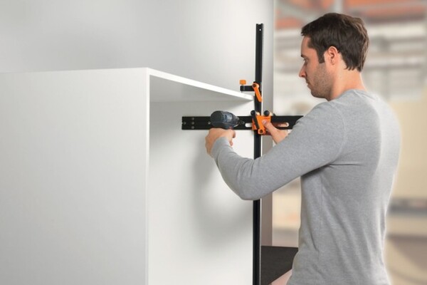 Robust tools provide all-around support for assembling drawers, fronts, and cabinets. You can use our universal boring template to precisely mark and pre-bore fixing positions.