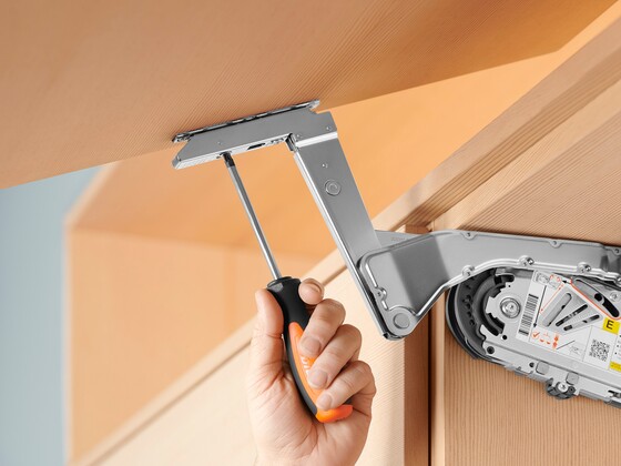 Installing AVENTOS lift systems is easier than you may think. In fact, the lever arms and doors snap together without using tools. Doors can even be adjusted in three directions using only a screw driver. Blum also offers templates that make installation a breeze.