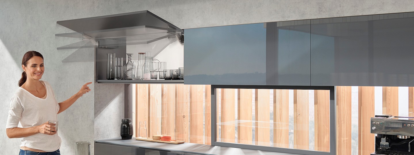 This short film demonstrates the function and free movement of SERVO-DRIVE for AVENTOS HF, as well as the silent and effortless closing with BLUMOTION.