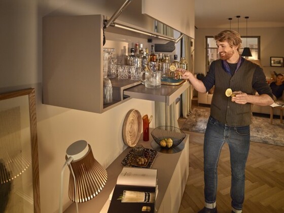 The pull-out shelf lock creates additional shelf space and gives users an added layer of space where they need it most, in cabinets or furniture pieces, whether in the kitchen, bathroom or utility room. By creating secure, flexible shelf space, users can mobilize kitchen gadgets and appliances, making them easy to use, and put away again in seconds.