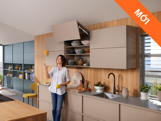 Tay nâng AVENTOS mở vuông góc tích hợp kết hợp hài hòa với tủ nội thất – tạo ra thiết kế tủ nội thất cao cấp.