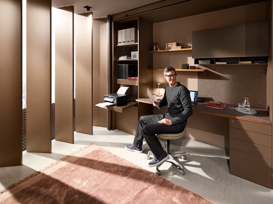 Even large and heavy devices can be concealed in an appliance garage with AMPEROS AC. The power outlet is installed at the rear of the pull-out, opening up a wide range of clever integration options, be it in the office, kitchen or living room.