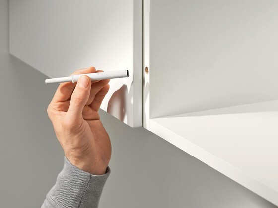 TIP-ON offers sophisticated technology and easy adjustment because the door gap adjustment feature is integrated in the fitting. There are special assembly templates by Blum. They are an extra help for installation and ensure that TIP-ON functions perfectly.